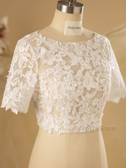 Half Sleeves Open Back Lace Bridal Cover Ups